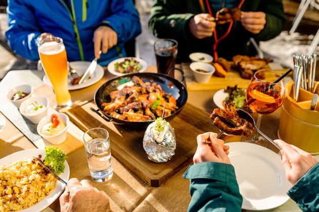 „Man wird schlichtweg angefüttert!" Nach dem Skifahren auf einen Kaiserschmarrn oder Apfelstrudel... Oder auch am Abend zum à la carte in den Stuben oder Donnerstags zum Hüttenabend mit Buffet.